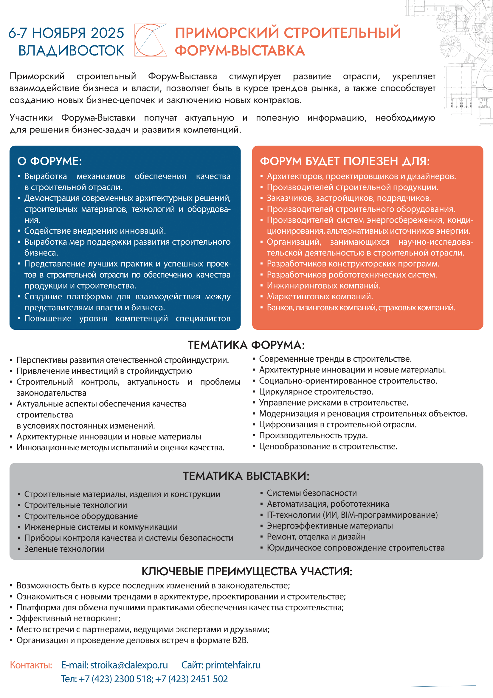 ПРИМОРСКИЙ СТРОИТЕЛЬНЫЙ ФОРУМ-ВЫСТАВКА пройдет 6-7 ноября 2025 г. во Владивостоке